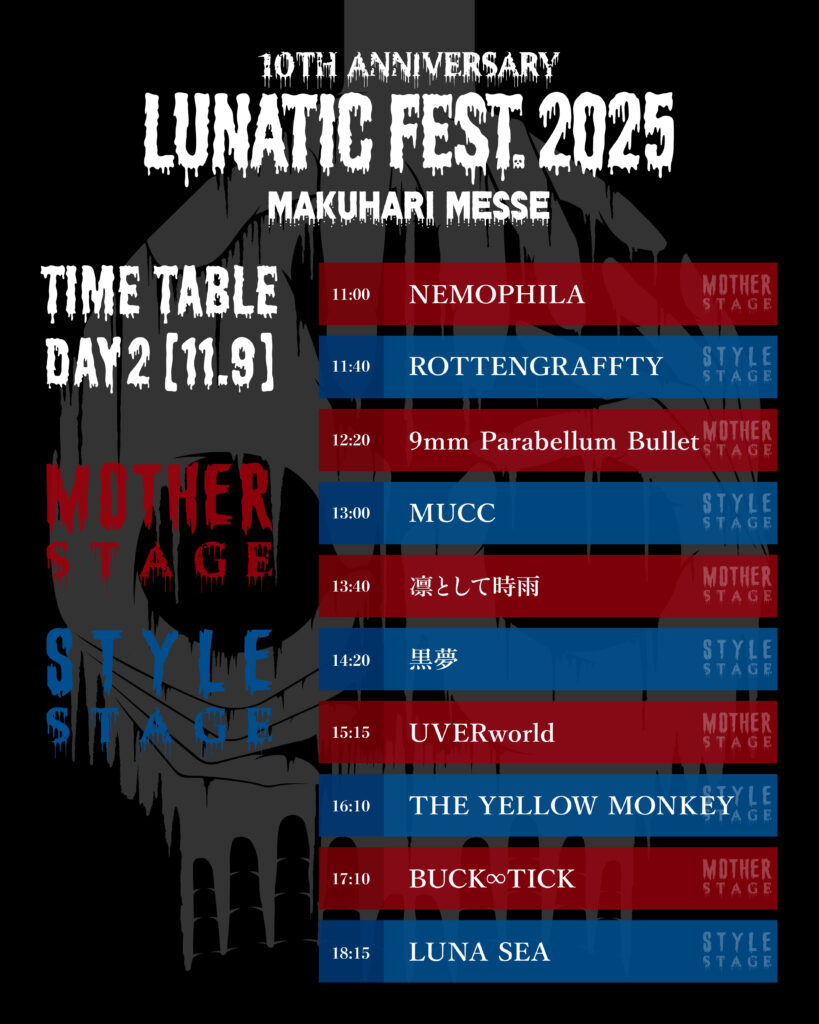 LUNATIC FEST. 2025のタイムテーブルが解禁されました